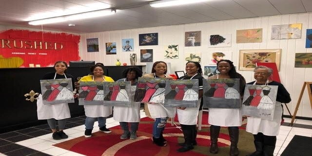 Brushed Adrienne Benet Studio offers a unique, mobile art experience that caters to all ages and skill levels. Our focus is on providing a fun, accessible, and creative environment where first-time artists can discover their artistic potential. We pride ourselves in teaching first time artists to be creative